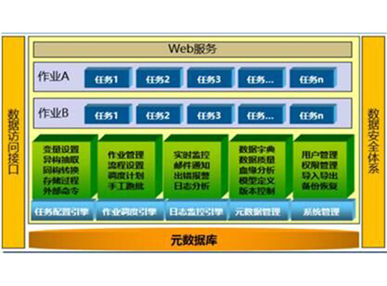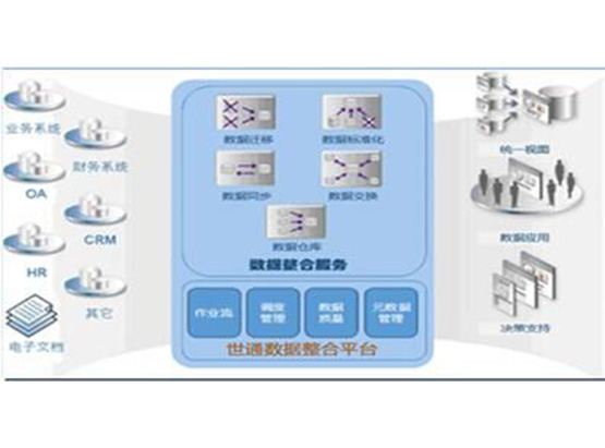 用户通过世通数据集成平台可以建立和管理数据模型,建立和管理数据源,建立和管理主数据,设计 ETL 流程以从各种数据源中抽取数据、转换/清洗数据、把数据加载到数据仓库或数据中心,调度和监控 ETL作业的运行状态,将 ETL作业通过 HA 集群分布到不同的 ETL服务器上运行。